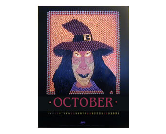 Description We created October's image using candy corn, pumpkins, chocolate kisses, licorice and gum balls.